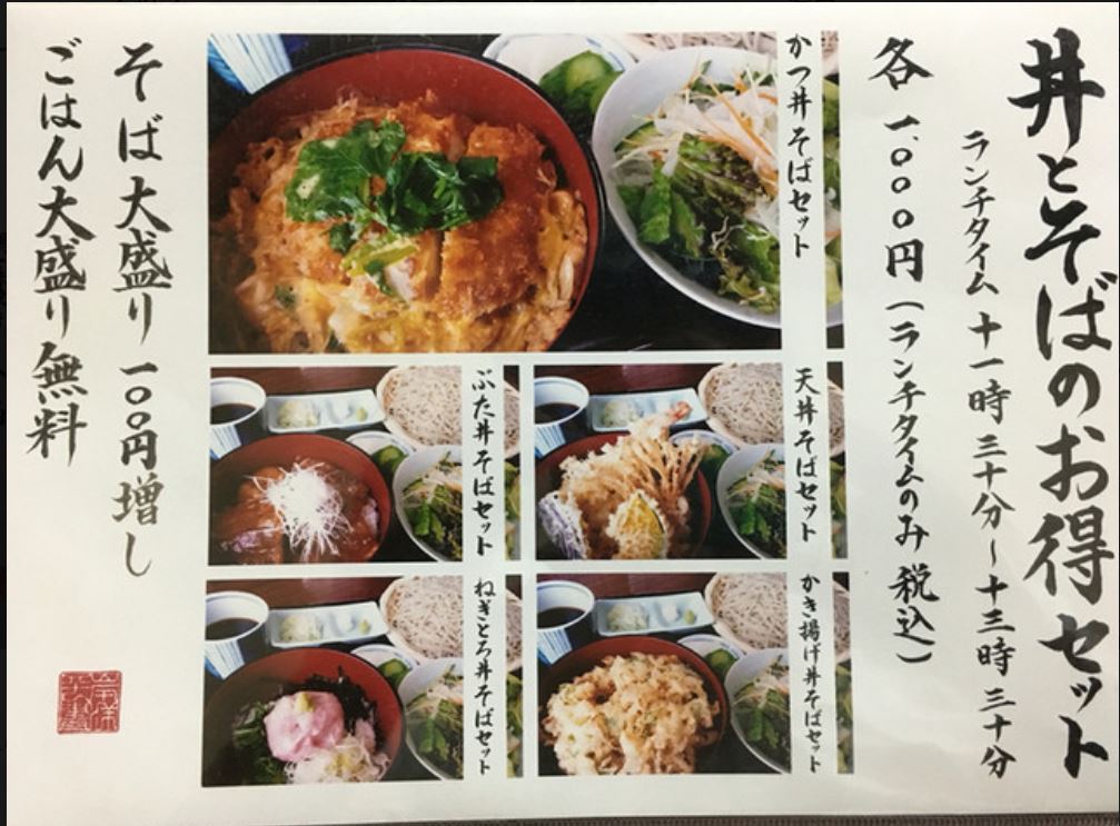- 蕎麦と丼のセット(ランチ) 1,000円